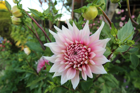 「ダリア・艶舞」をフロントヤード(道路に面した)のガーデン2段目のフォーカルポイントに、存在感がグッと増しましたよ。