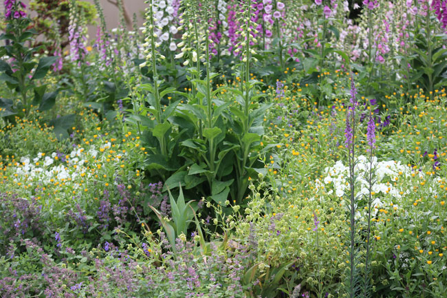 お花は 「紫蘭」「リナリア」それにイングリッシュガーデン定番「ジキタリス」が美しく咲いていました。